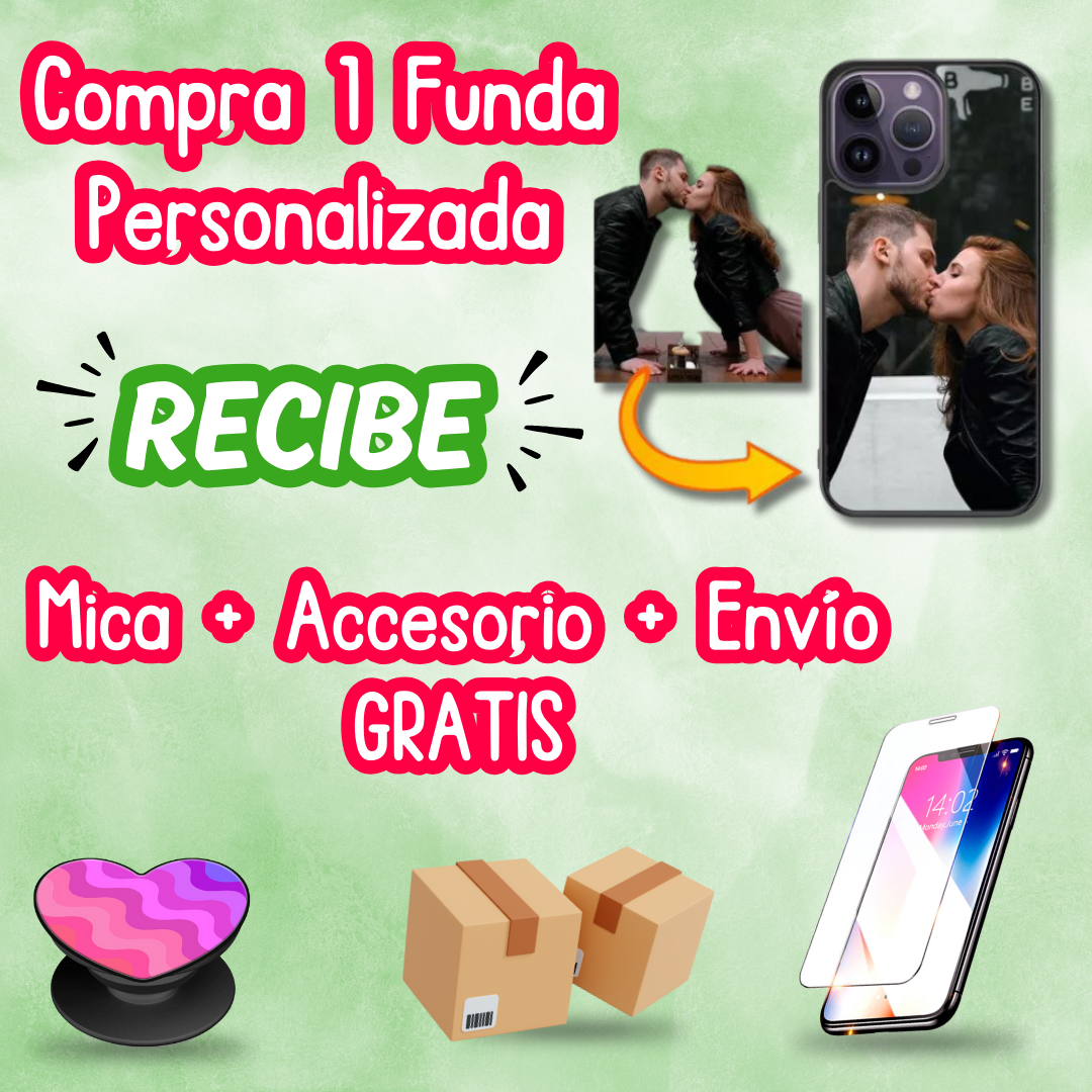 Compra 1 o más Fundas Personalizadas y llevate: Mica de Cristal GRATIS + Accesorio GRATIS + Envio GRATIS.